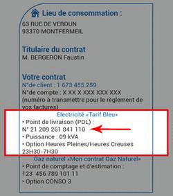 Le numéro PDL est, quant à lui, renseigné sur la facture d’électricité. Il est composé de 14 chiffres.
